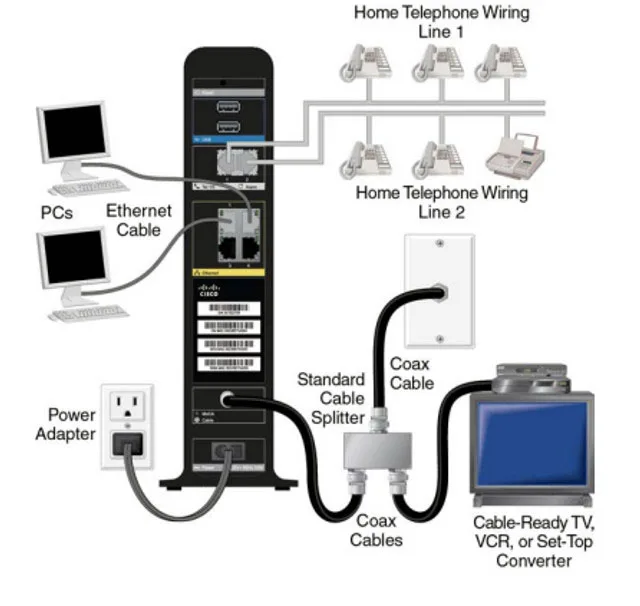 - Combo de módem-router DOCSIS 3.0 de doble banda con 2 líneas telefónicas integradas